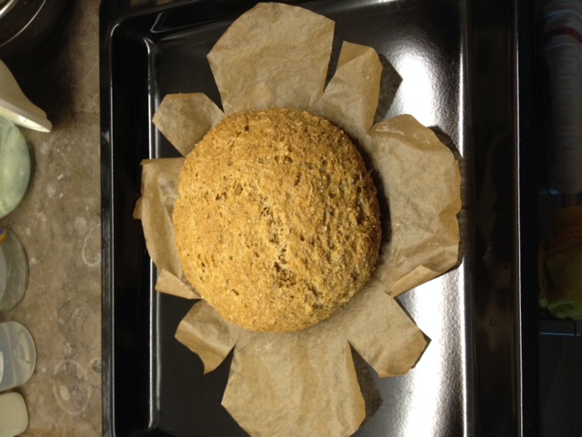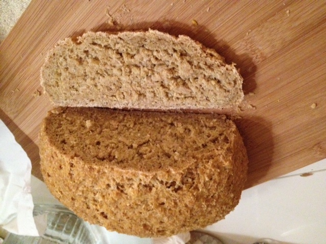 Ezen kivul jelenthetem, hogy jelentos valtozas tortent, kerekedik az arcom vissza. Nagy titok nincs benne, a Janos apostol altal leirt kenyeret “sutottem” meg. Itt a kep is (600g buzaszembol van). Mar tobbszor is probaltam ezt megcsinalni, meg mielott belevetettem volna az Esszenusok eletebe, de akkor valahogy nem sikerult, nem volt jo allaga, stb. Akkor azt pihentettem, de most hogy ismet olvastam rola, megint nekifogtam, utana neztem a netten (Essene bread, Ezekiel bread, Manna bread – ezeken a neveken is fut) Lenyege a kicsiraztatott buza. A kepen lathato kenyer 4 napig keszult. 2 nap volt mire kicsirazott a buza (en kamutot hasznaltam mert itt meg nem talaltam olyan tonkolyt ami ki tudott volna csirazni. A kamut meg amugy is valami 6000 eves fajta egyiptomi buza, szerintem megfelel). Amikor eppenhogy kibujtak a csirak (meg nagyon aprok), husdaralon at kell daralni (en az Omega juicer pepesitojet hasznaltam erre). Elotte mindig Vitamix-ben csinaltam az apritast, es az nagyon nem ment, darabos maradt a teszta es nem is lett jo a kenyer belseje, azert hagytam fel vele. De a daraloban, vagy a juicer pepesitojeben, nagyon franko kis tesztat lehetett kapni. Ha a csira mar kijott es mar kis szarnak nez ki, abbol mar nincs jo kenyer, mert vizesebb es a belseje is ragacsosabb marad. (ezt miindenkinek ki kell tapasztalnia a sajat konyhajaban/buzajaval). Mikor kesz a “teszta”, amihez SEMMI nem kell, se so, se eleszto, se kovasz, cipot formalunk belole (ilyen gyurma az allaga), en egy ejszakara parna ala raktam es ott kelt. Masnap reggelre meg is kelt masfelszeresere, es utana 110 fokon sult. Egyszer 2.5 oraig, egyszer 3.5 oraig. Mind a ketto jo lett. Igazabol nem is ereztem a kulonbseget a hosszabban sult kenyernel.