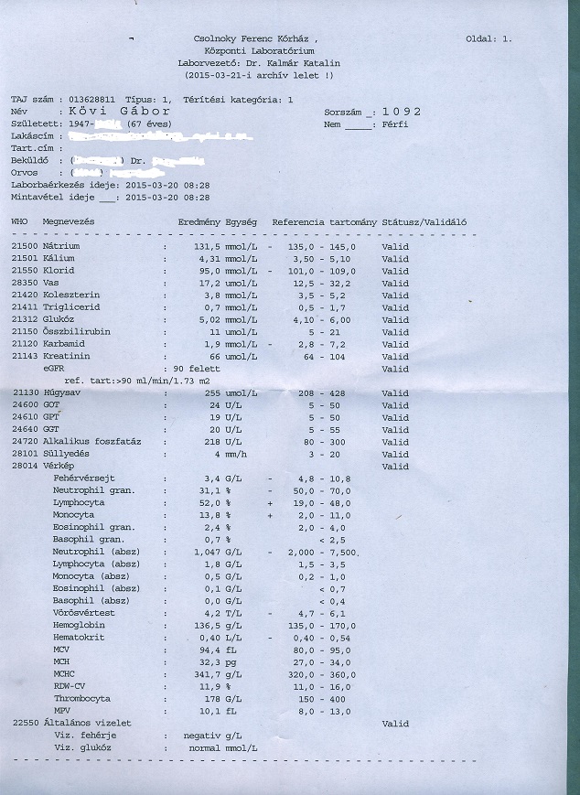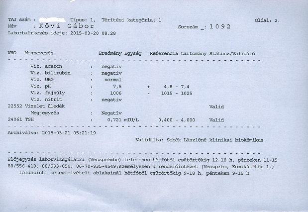 Ugyebár, a klorid és a nátrium azért alacsony, mert nem eszem sót, és a karbamid az állati fehérjék fogyasztásának mellőzése miatt alacsonyabb valamivel, de hozzá kell tenni, hogy az átlagszintek a mindenevők szerint vannak meghatározva.