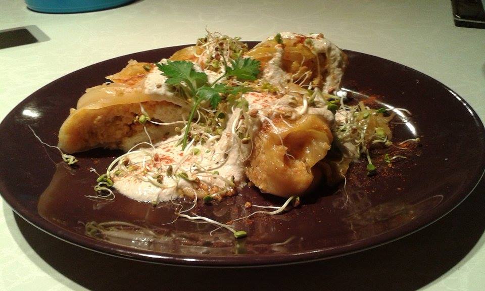 A rizses variáció szinte ugyanez, csak ott a beáztatott szója garnulátumot keverem össze a rizzsel és teszem bele a hagymákat és az előbb említett ízesítőket.