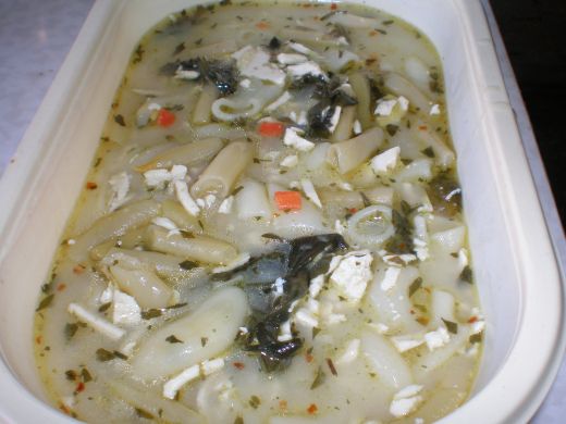 Felöntjük vízzel és a tésztát beletéve összefőzzük a vegamix keverékkel.