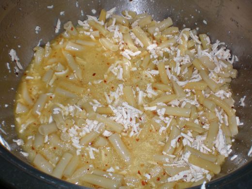 Majd hozzá tesszük a zöldbabot és összefőzzük.