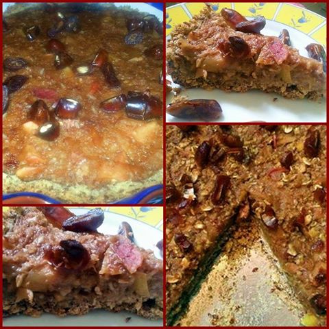 A tésztát megkenem az almás-datolyás töltelékkel, szórok rá aprított aszalt datolyát, és közepes hőmérsékleten kisütöm. heart hangulatjel
