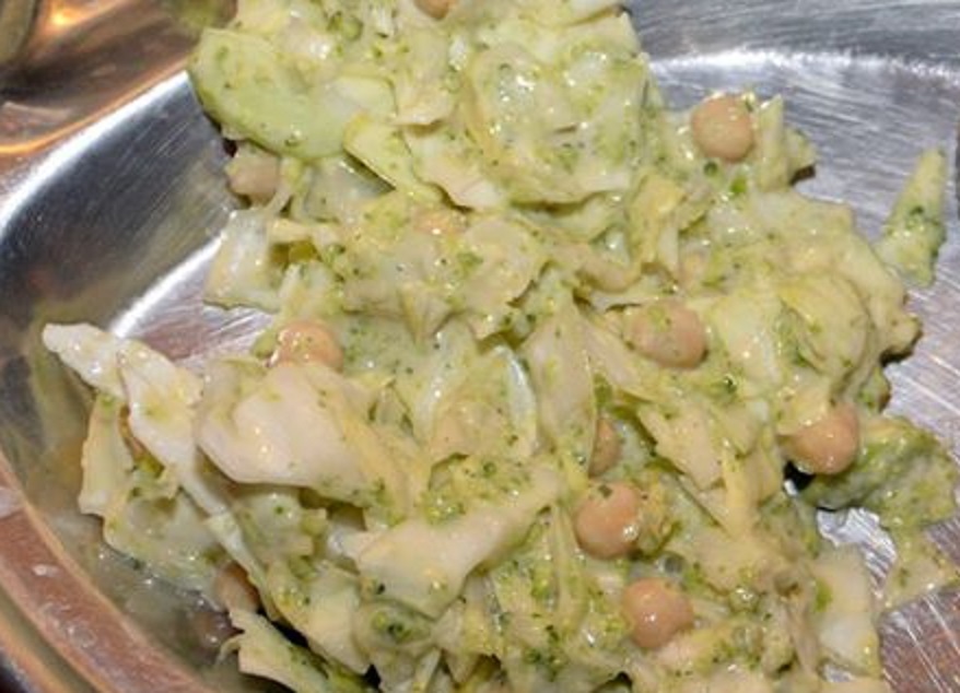 pagoda káposzta - brokkoli - vegan majonéz - sörélesztőpehely - főtt csicseriborsó - olíva olaj - tanulni akaró lelkes résztvevők